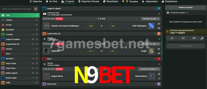 O N9Bet oferece uma grande seleção de opções de apostas em e-sports com probabilidades competitivas